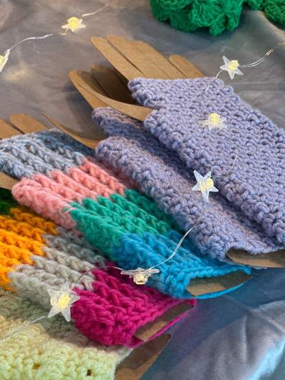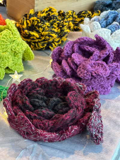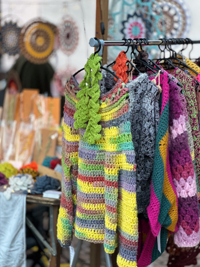 Realizzo ogni capo con calma, cura e tanta passione: maglioni senza cuciture, scialli avvolgenti, gilet boho, accessori caldi e colorati, piccoli pezzi unici che possono diventare il regalo perfetto da mettere sotto l’albero.