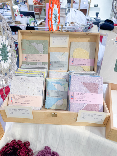 Foglie e cartoncini creati a mano, carte piantabili, stampa su carta artigianale, biglietti, segnalibri e piccole opere illustrate. Una linea che unisce sostenibilitĂ , estetica e poesia visiva.