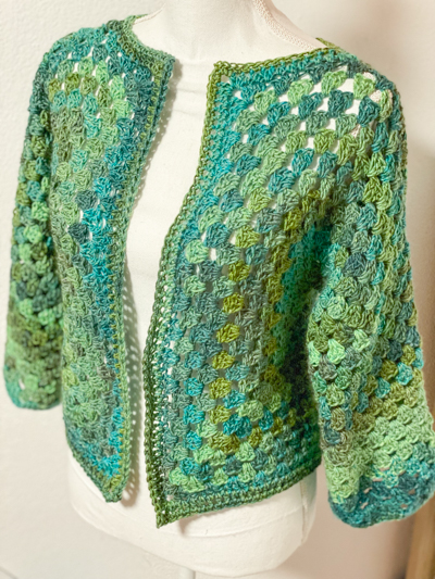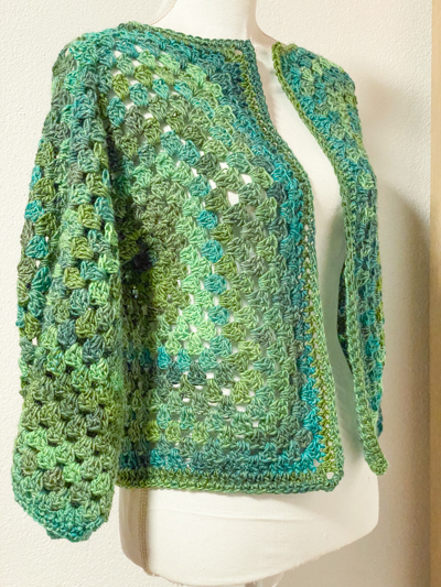 Cardigan esagonale granny all’uncinetto verde