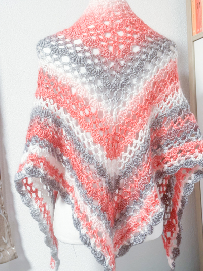 Scialli 3D lavorati all’uncinetto con punti fantasia e filati coloratissimi. Caldi, morbidi e piacevolissimi da indossare. Di facilissima cura!